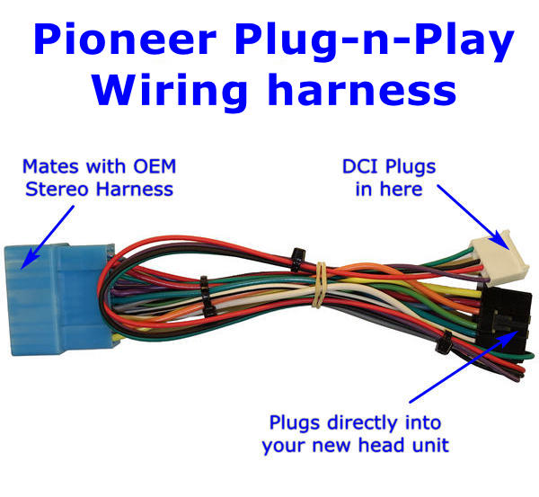 Easiest installation ever - this custom Plug-n-Play harness connects into the head unit, the car's stereo harness, and our DCI (Dash Control Interface) to simplify installation of a Pioneer head unit and DCI. This harness greatly reduces installation time and there are no worries about making the right wire connections.